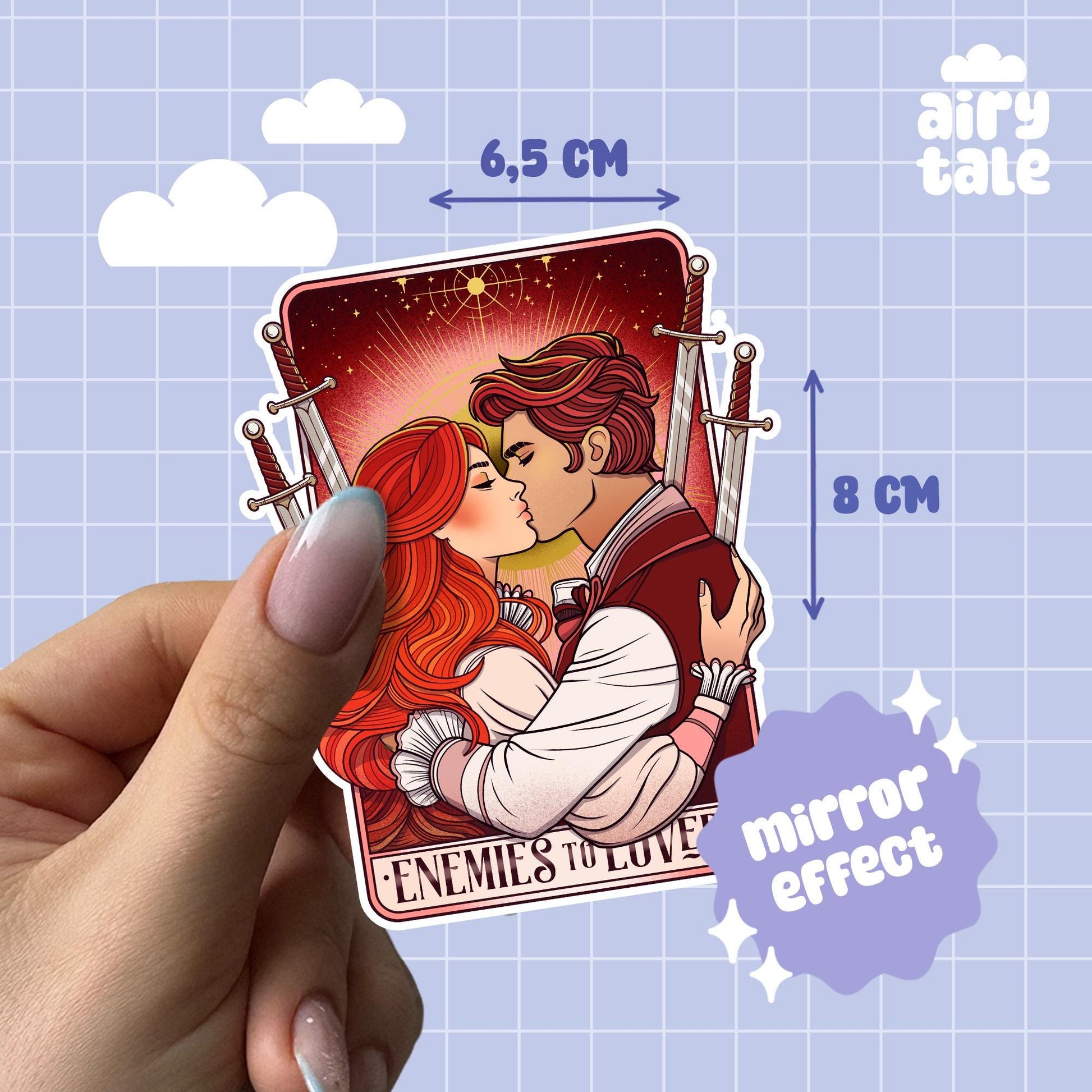 Der Enemies to Lovers Sticker mit funkelndem Spiegeleffekt zeigt eine herzliche Tarot-Umarmung – perfekt für alle Romantikfans! Aus wetterfestem, glänzendem Vinyl, ideal für Kindle, Laptop oder Notizbuch. Ein tolles Geschenk für Liebesgeschichten-Fans und Bücherwürmer. Größe: 6,6 x 8 cm.