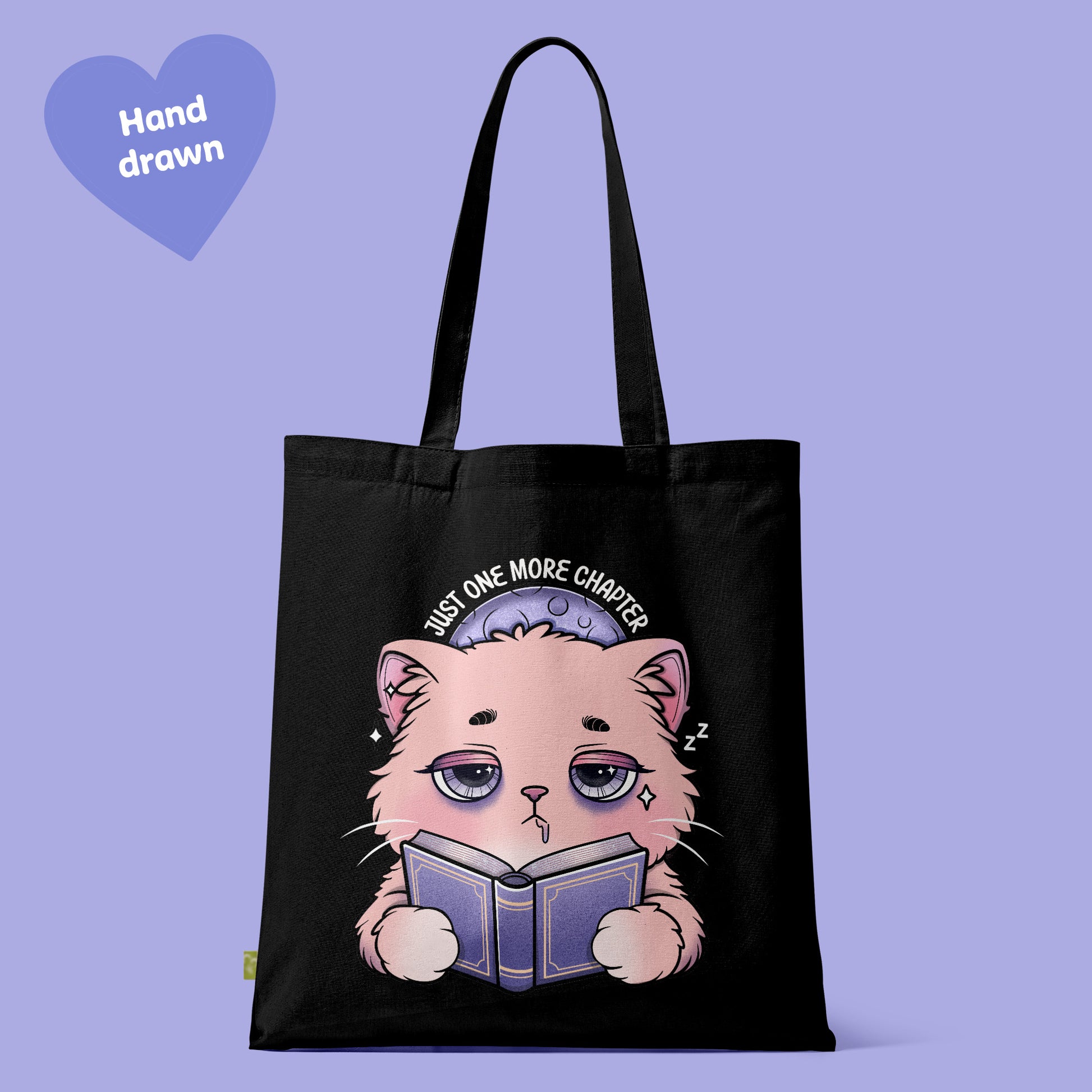 Der „Just One More Chapter“ Jutebeutel ist perfekt für alle Bücherfans, die einfach nicht aufhören können zu lesen – auch wenn die Augen schon müde sind! Mit einer süßen, schläfrigen Katzenzeichnung und viel Platz für Bücher, Tablet oder Alltagssachen begleitet er dich überall hin. Hergestellt aus 100 % nachhaltiger Bio-Baumwolle, ist er robust und umweltfreundlich. Ideal für Nachtleser und ein tolles Geschenk für alle, die „nur noch ein Kapitel“ lieben!