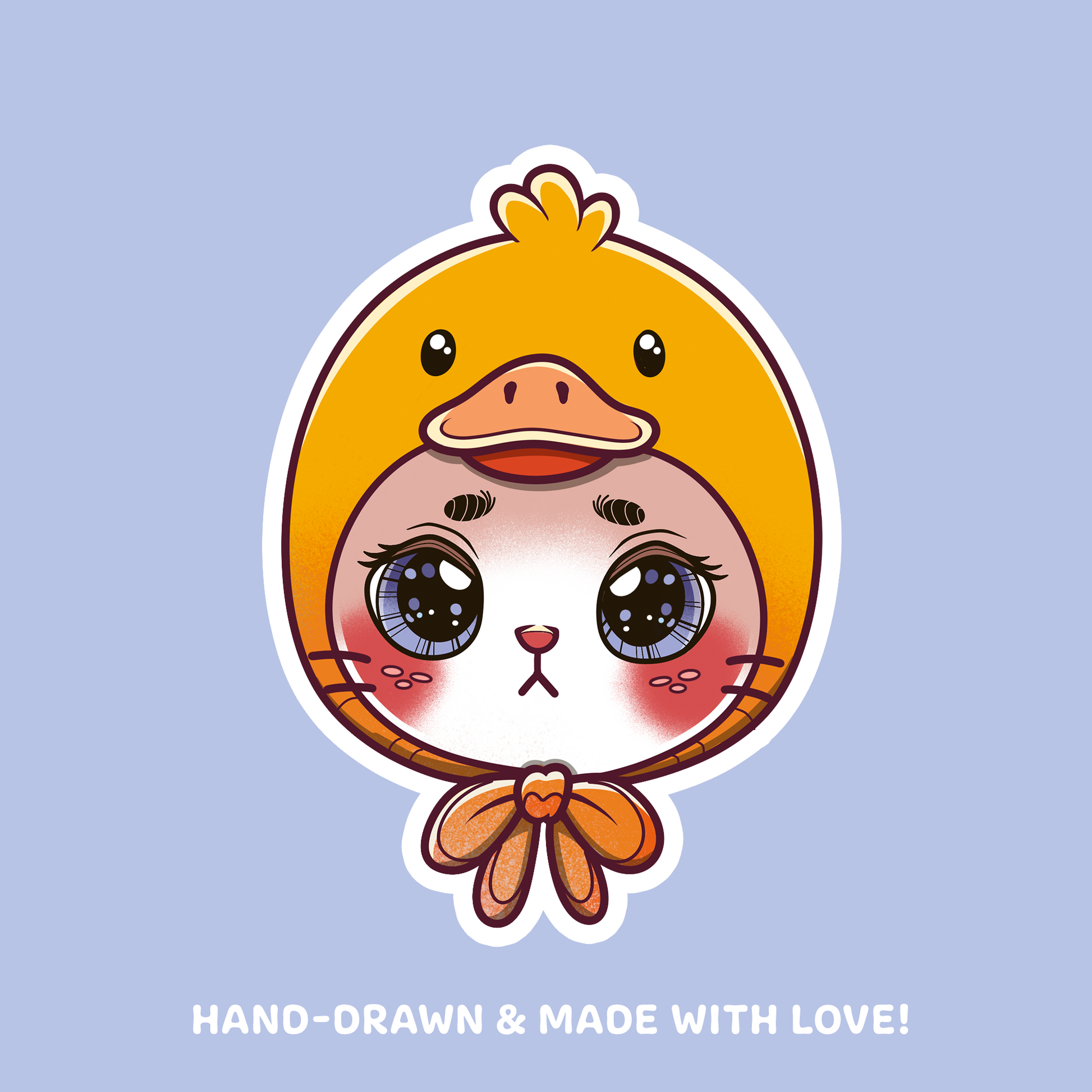 Diese bezaubernde Katze trägt eine niedliche Entenmütze. Ideal für Bücherwürmer und Katzenfans, lässt sich vielseitig auf Kindle, Laptop, Notizbuch und mehr verwenden. Ein tolles Geschenk für Katzenliebhaber und Fantasy-Fans. Hergestellt aus wetterfestem, glänzendem Vinyl für lange Haltbarkeit. Größe: 4.6x6.4 cm