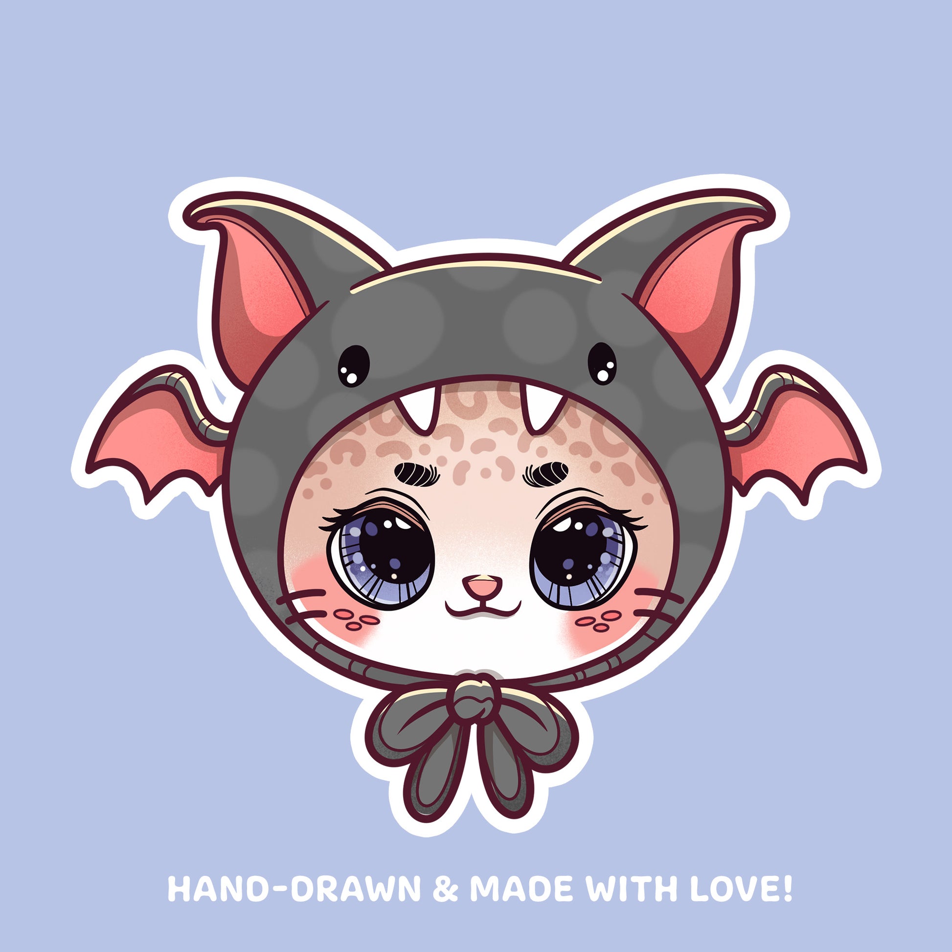 Diese bezaubernde Katze trägt eine niedliche Fledermausmütze. Ideal für Bücherwürmer und Katzenfans, lässt sich vielseitig auf Kindle, Laptop, Notizbuch und mehr verwenden. Ein tolles Geschenk für Katzenliebhaber und Fantasy-Fans. Hergestellt aus wetterfestem, glänzendem Vinyl für lange Haltbarkeit. Größe: 7.5x6.2 cm