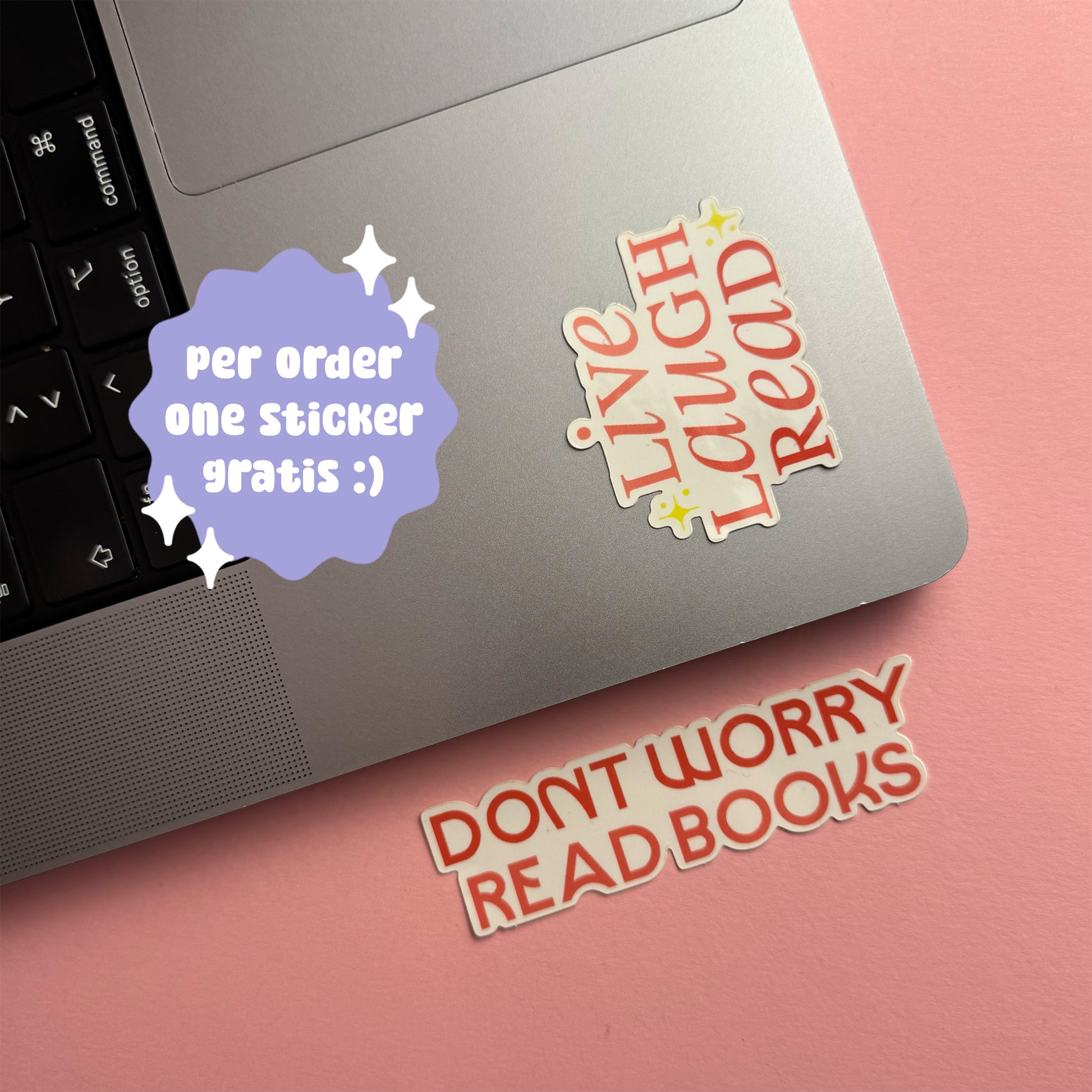 Dieser Vinyl-Aufkleber mit dem Spruch „Live Laugh Read“ ist das perfekte Geschenk für Buchfans. Der Sticker ist wetterfest, langlebig und bringen positive Stimmung auf Laptop, Tablet oder Trinkflasche. Ideal für alle, die Bücher lieben und gerne inspirierende Zitate zeigen. Größen: 5,4 x 5,2 cm