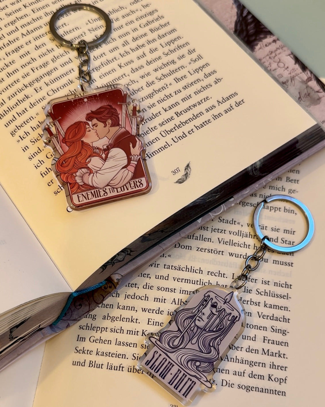 Dieser 6 cm große Anhänger bringt einen buchigen Vibe in deinen Alltag – ob am Schlüsselbund, an der Tasche oder als kleines Extra für unterwegs. Der Anhänger ist an einem stabilen Silberring befestigt und somit überall einsatzbereit.