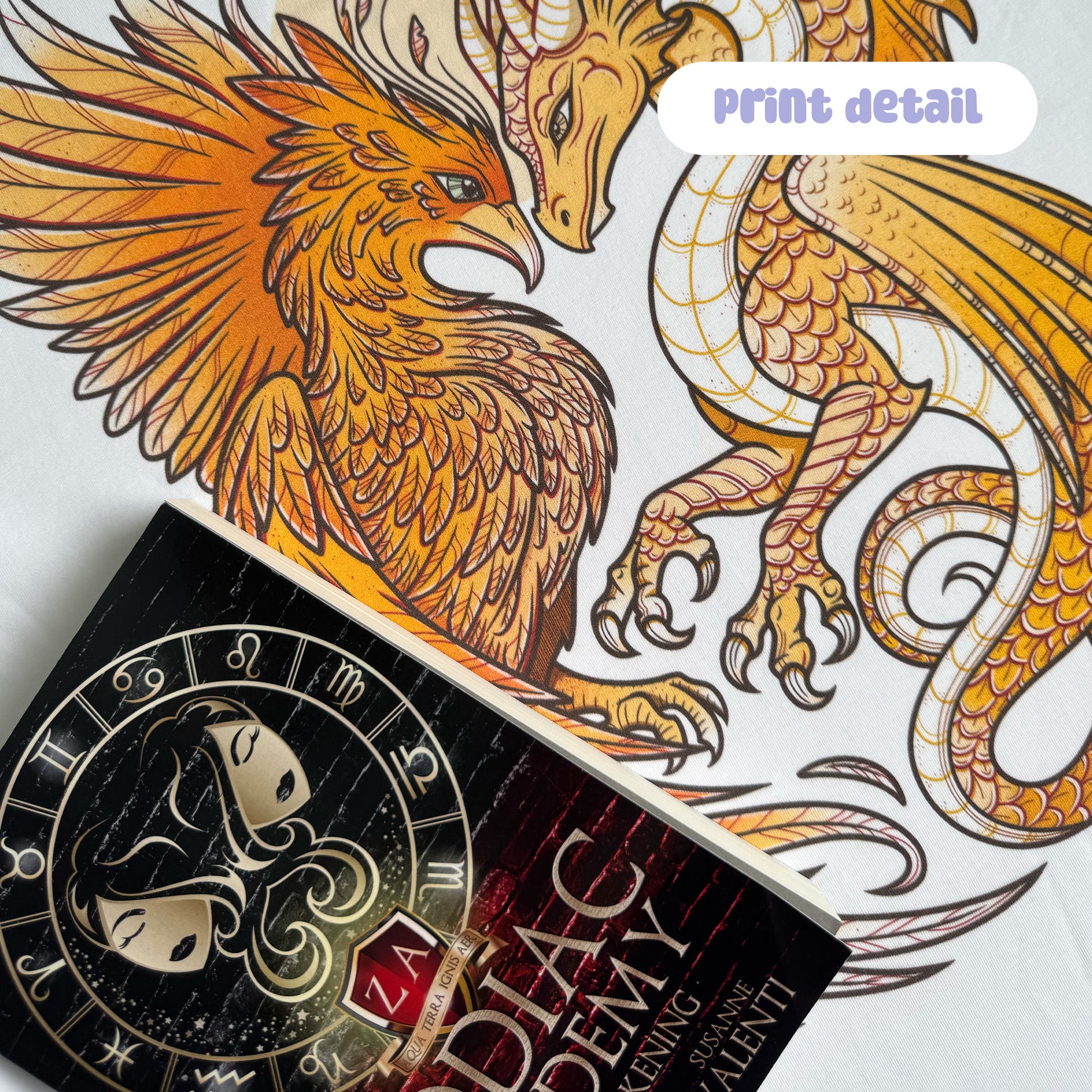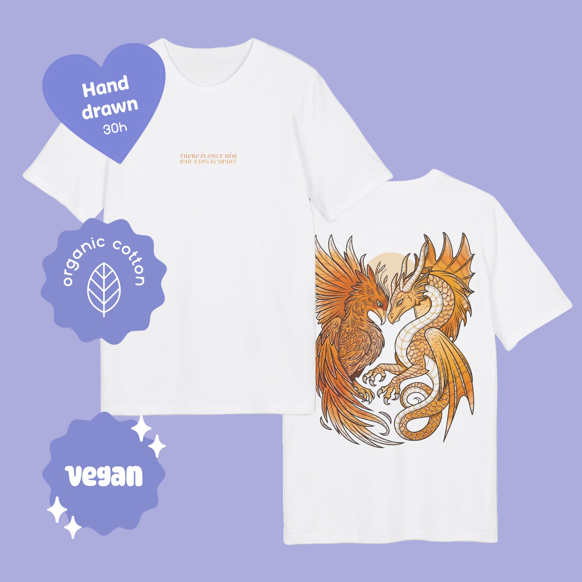 🔥 Offizielles Zodiac Academy Shirt mit Darius & Tory! 🐉✨ Für alle, die das Feuer und die Magie dieser epischen Lovestory nicht nur spüren, sondern stolz tragen wollen. Das Shirt zeigt auf dem Rücken ein farbenfrohes Phönix- und Drachenmotiv, inspiriert von Darius’ Rückentattoo und mit 30 Stunden liebevoller Handzeichnung gestaltet – ein Symbol für Stärke und ewige Verbundenheit. Auf der Brust verstecken sich zwei Botschaften, eine davon ist nur im Spiegel lesbar: „there is only him“ und „there is only her“. Hergestellt aus 100 % Bio-Baumwolle, vegan und mit viel Herzblut gefertigt. Perfekt für Fans, die ihre Leidenschaft zeigen möchten!